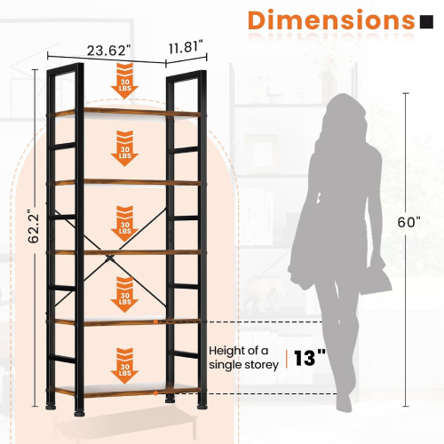 Ocupa poco espacio en el suelo y proporciona amplio espacio de almacenamiento vertical para libros, plantas, artículos de oficina, CDs y más.